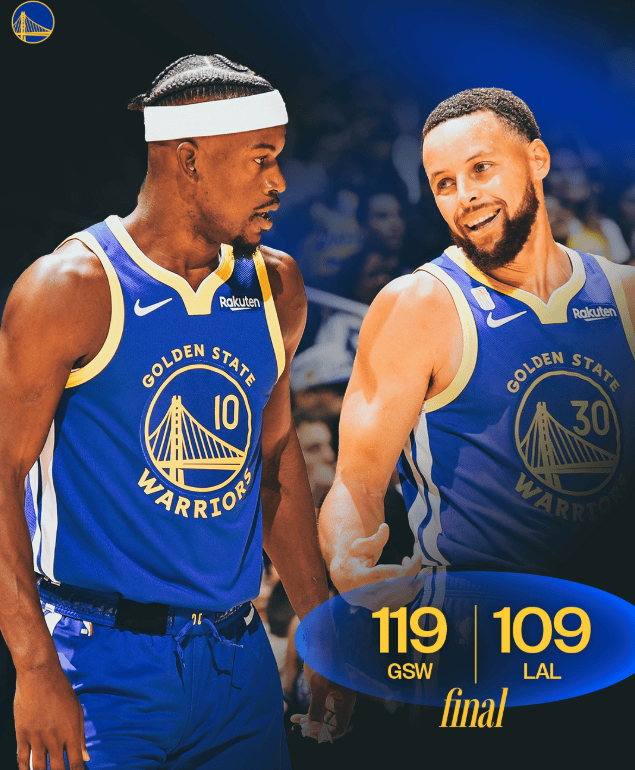 今日,NBA常規賽,社媒勇士119-109戰勝湖人。分享