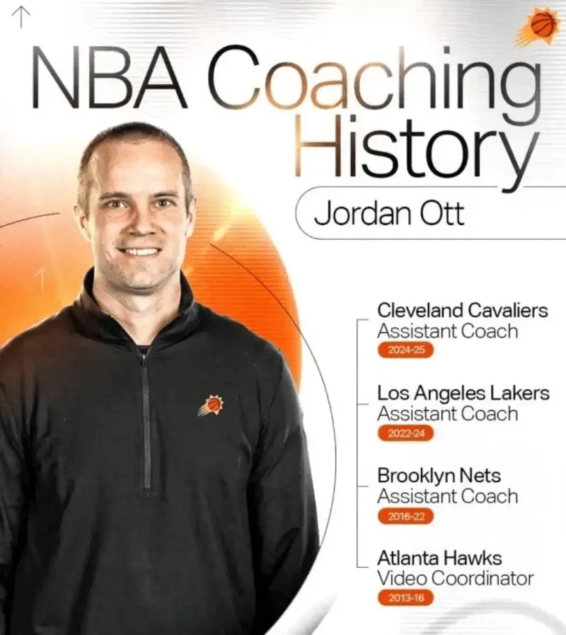 新教練:近幾年太陽(yáng)一直在解雇教練,沃格爾、蒙蒂威廉姆斯、布登霍爾澤。而如今這支嶄新的年輕球隊由一個(gè)年輕的教練喬丹-奧特執教。上賽季在騎士隊教練組擔任助理教練,幫助騎士獲得了很不錯的常規賽戰績(jì)。他擅長(cháng)運用數據分析來(lái)提升攻防兩端,并高度重視團隊精神。