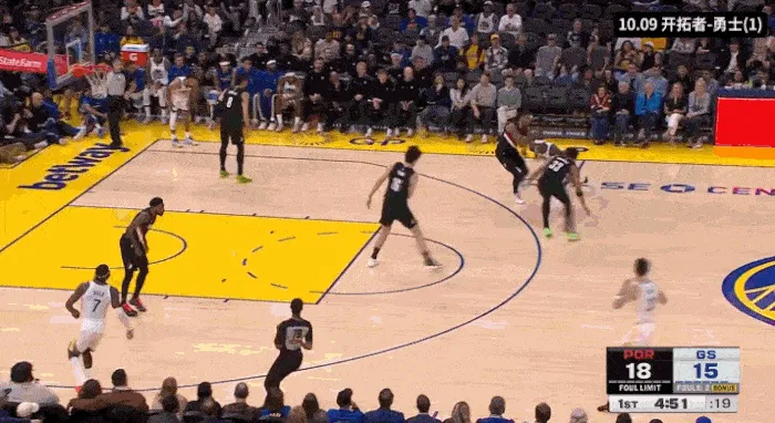 這記三分球打在了開(kāi)拓者防守的弱環(huán)上,楊瀚森防守選位不好,對三分球的防守沒(méi)有顧及到。