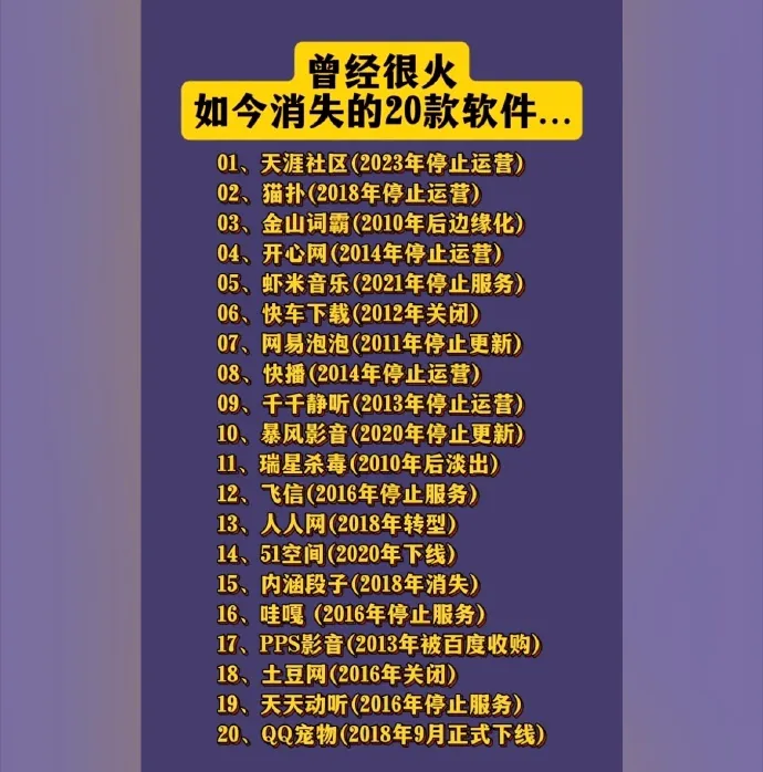 曾經(jīng)爆火,如今已經(jīng)消失的20款軟件,你覺(jué)得哪個(gè)最可惜?