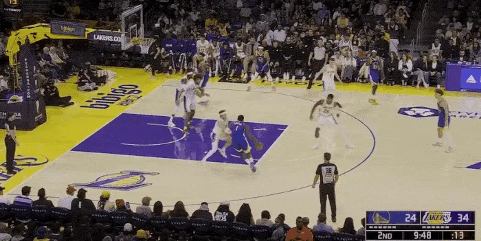 庫明NBA季前賽,湖人對陣勇士的位背比賽正在進(jìn)行中。