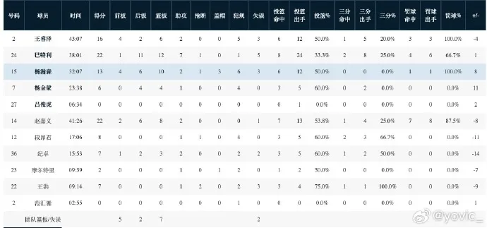 在本場(chǎng)比賽中,楊瀚森砍下4分4籃板1助攻。