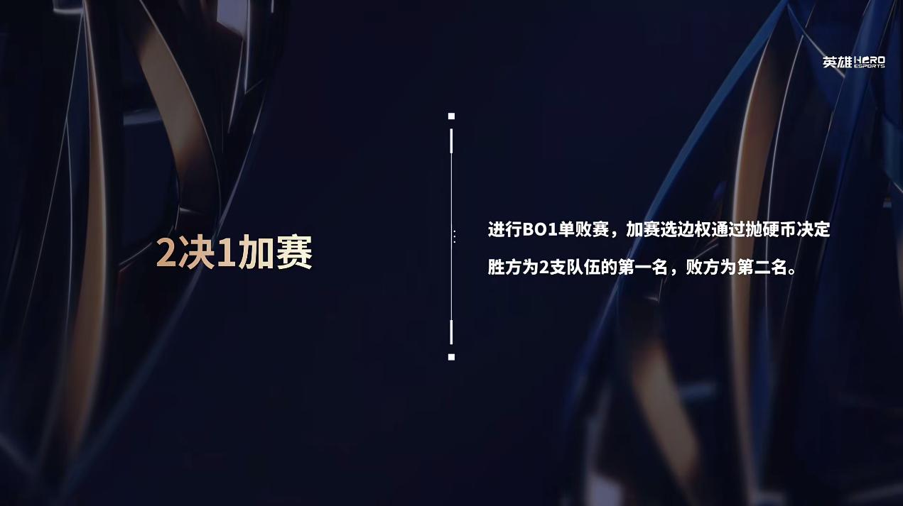 來(lái)源:虎撲電競虎撲10月11日訊 2決1加賽:進(jìn)行BO1單敗賽,加賽選邊權通過(guò)拋硬幣決定,板即邊權勝方為2支隊伍的將進(jìn)加賽進(jìn)行決定第一名,敗方為第二名。行決