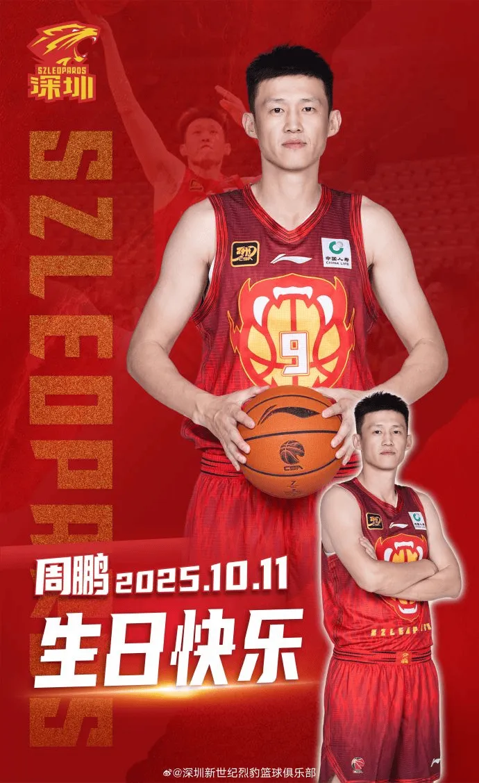 虎撲10月11日訊 今日,深圳男籃官方更新社媒分享海報,福周祝福周鵬生日快樂(lè )。鵬生
