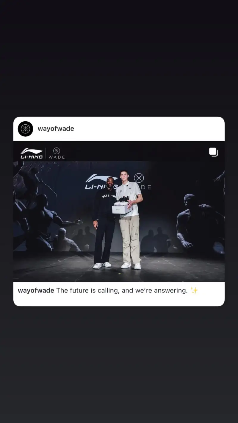 虎撲10月12日訊 德維恩-韋德INS分享動(dòng)態(tài),李寧旗下韋德個(gè)人品牌韋德之道官宣簽約籃網(wǎng)新秀葉戈爾-杰明。流言李寧