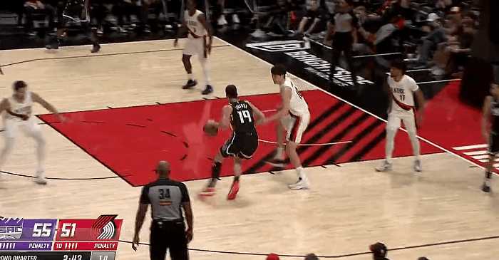 虎撲10月11日訊 NBA季前賽,開(kāi)拓者對陣國王的防中比賽正在進(jìn)行中。