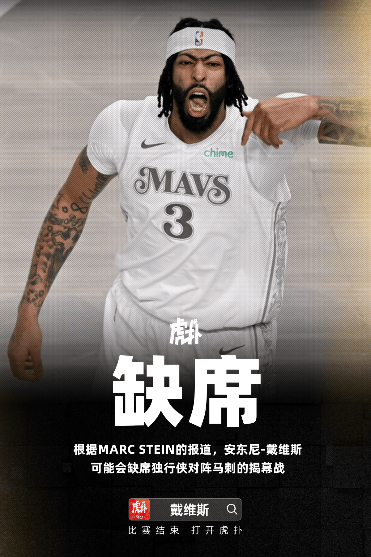 其寫(xiě)道:“安東尼-戴維斯可能會(huì )缺席10月22日(美國時(shí)間)獨行俠對陣馬刺的幕戰揭幕戰?!?/p>