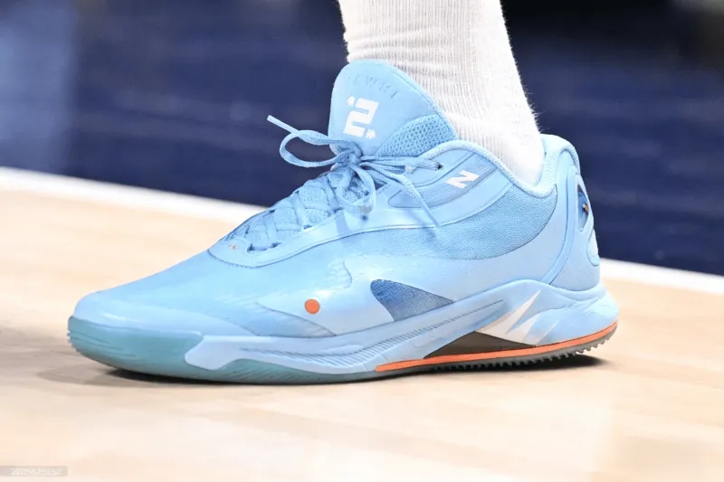 比賽中,分助倫納德上腳藍色New Balance Kawhi 4。流言藍色