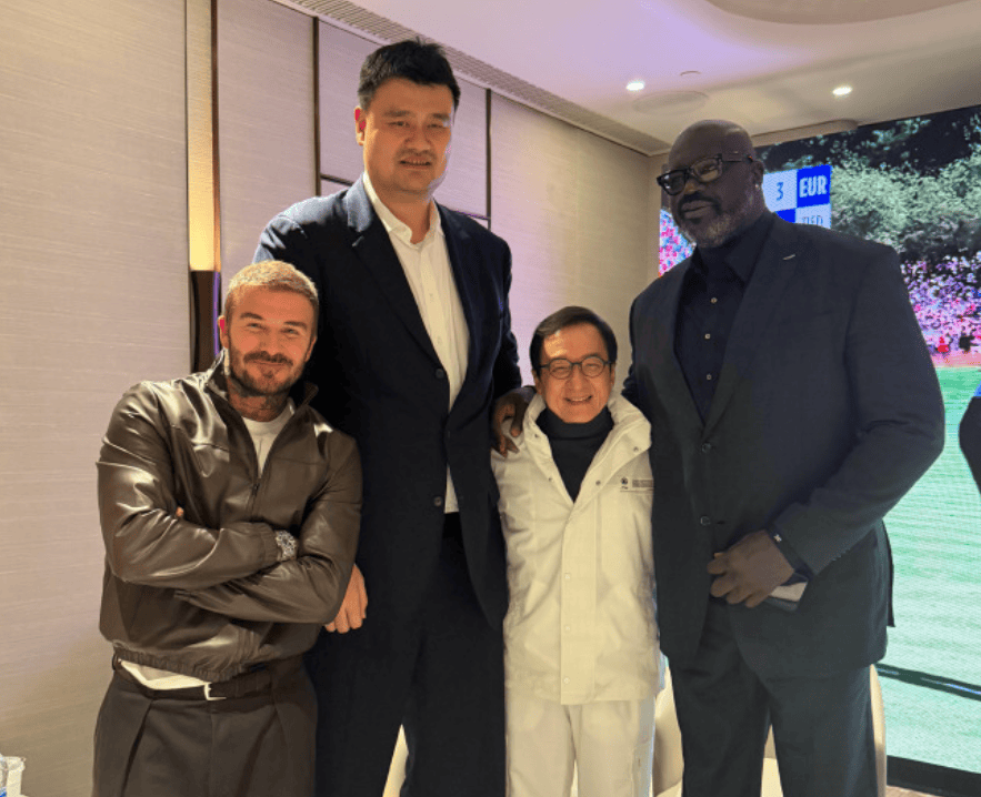 來(lái)源:微博虎撲10月11日訊 今日,奧尼爾更新社媒曬出自己與姚明、姚明影好成龍和貝克漢姆的等人的合合影。