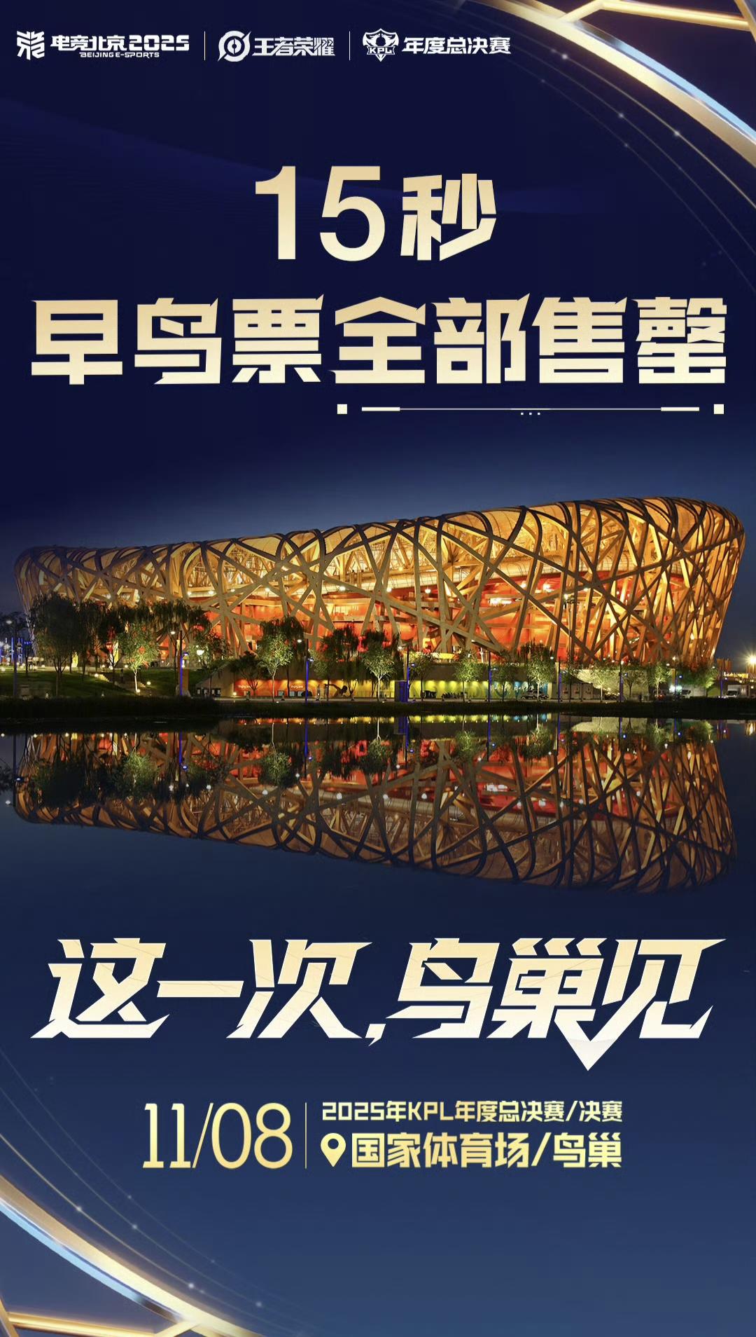 虎撲10月11日訊 15秒!2025KPL年度總決賽-決賽 早鳥(niǎo)票全部售罄!板秒原文如下: