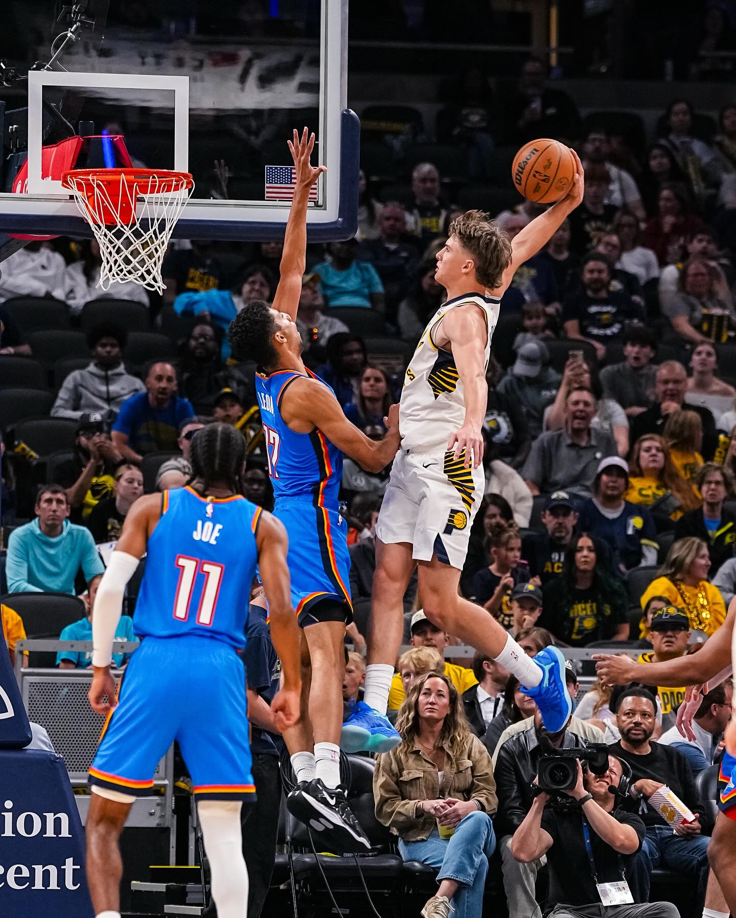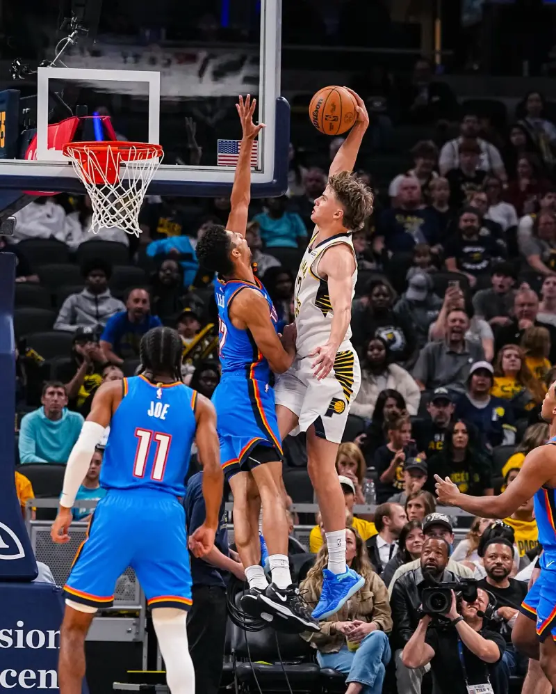 虎撲10月12日訊 NBA季前賽,步行者對陣雷霆的官方個(gè)角隔扣比賽正在進(jìn)行中。