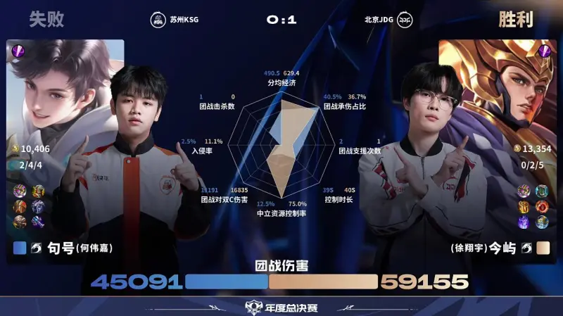 虎撲10月11日訊 JDG/KSG加賽數據對比:清融經(jīng)濟轉輸出更高,流浪團傷更高。加據對濟轉