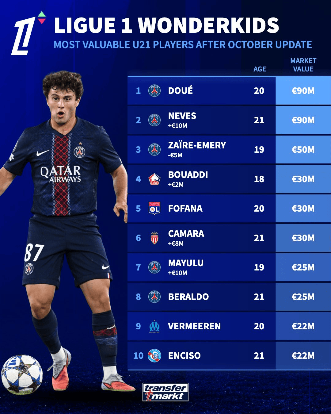 來(lái)源:轉會(huì )市場(chǎng)虎撲10月11日訊 在法甲球員身價(jià)更新后,德轉也發(fā)布了榜單,流言列榜盤(pán)點(diǎn)目前法甲本期U21球員的板法榜杜M并身價(jià)排行榜。