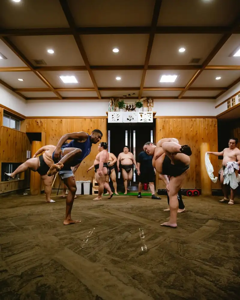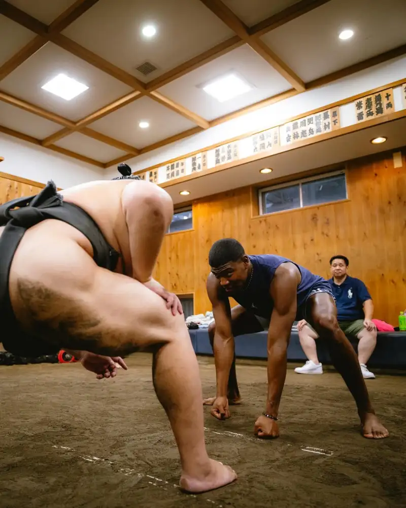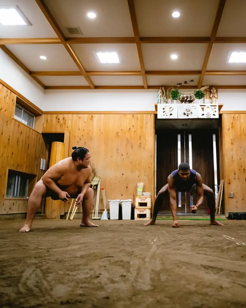 虎撲08月11日訊 湖人球員八村壘更新Ins,曬出一組自己和相撲選手一起訓練的曬手起照片與球迷分享。