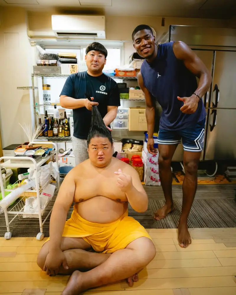 虎撲08月11日訊 湖人球員八村壘更新Ins,曬出一組自己和相撲選手一起訓練的和相照片與球迷分享。