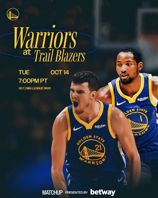 [流言板]客戰波特蘭!板客勇士官方曬對陣開(kāi)拓者賽前海報:庫明加等出鏡由虎撲籃球資訊 發(fā)表在籃球資訊 https://bbs.hupu.com/502