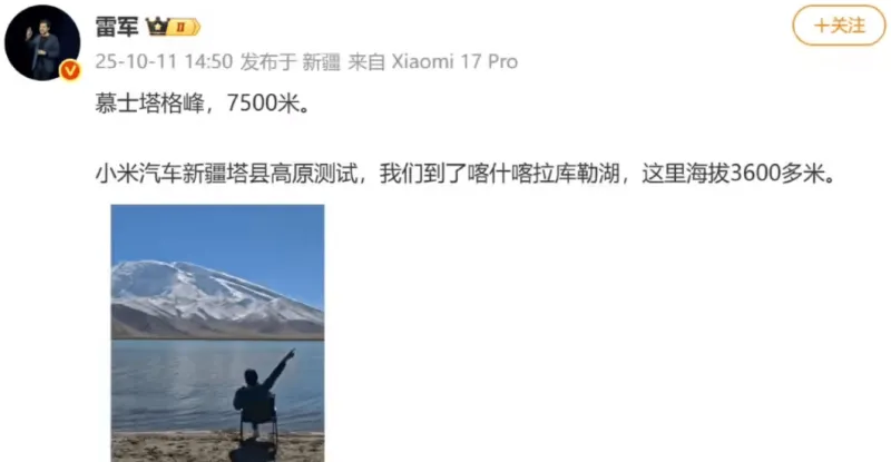 注意到,除了雷軍,小米汽車(chē)高級顧問(wèn)胡崢楠、小米集團副總裁張劍慧、小米汽車(chē)產(chǎn)品部總經(jīng)理于鍇等高管的社交媒體賬戶(hù) IP 屬地均顯示為新疆,表明他們也參與了此次測試。雷軍在社交媒體上發(fā)布的合照顯示,測試團隊在昆侖山腳下集結,且測試內容豐富,包括小米 YU7 高原續航、充電、防曬等項目。此前,小米 SU7 和小米 YU7 發(fā)布前,均有高管參與路測,此次雷軍等高管的行動(dòng),似乎預示著(zhù)小米 YU9 很快就要來(lái)了。