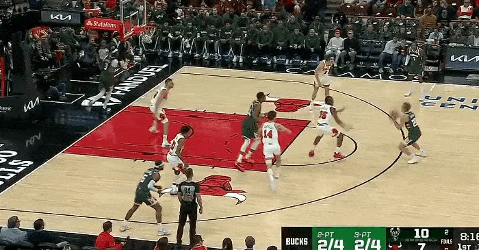 第一節比賽中,特納特倫特連特納、中記特倫特連中4記三分,分雄雄鹿開(kāi)局一波12-0打停公牛。鹿開(kāi)