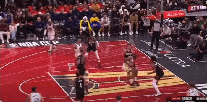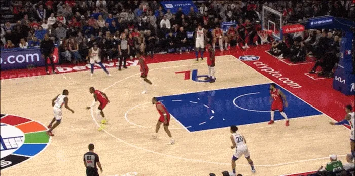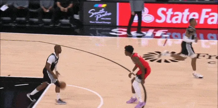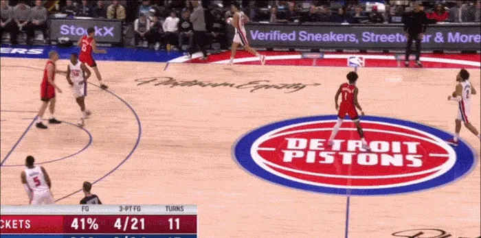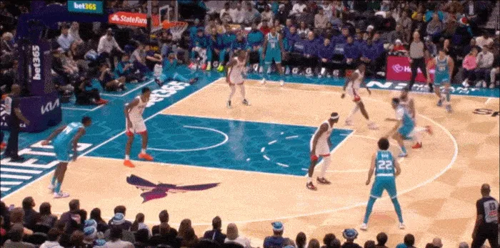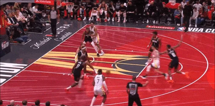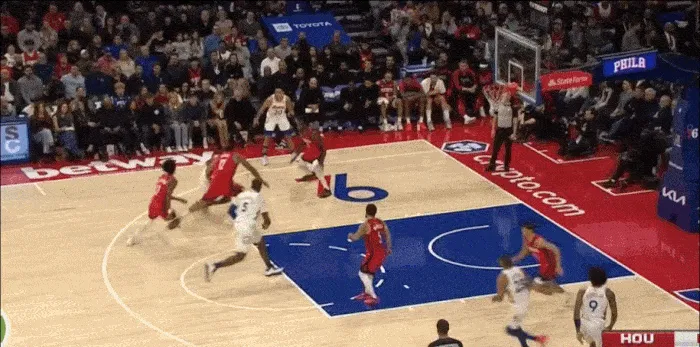 出色的彈跳再加上良好的防守意識,讓他可以在兼顧自己防守的人之外,同時(shí)幫助隊友進(jìn)行補防和協(xié)防。這三個(gè)回合都不是他所照看的人,等到進(jìn)攻人開(kāi)始突破時(shí),他從弱側殺出直接封蓋對手。