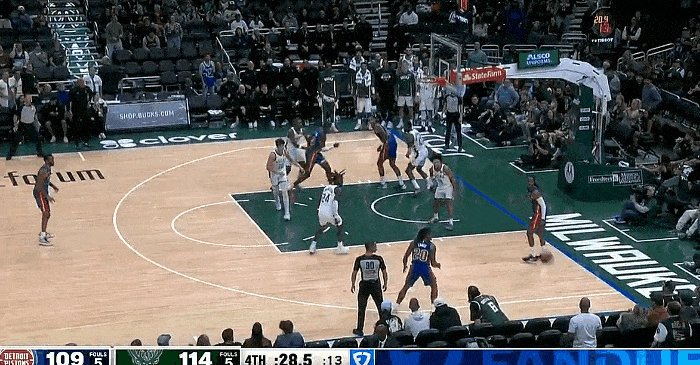 第四節比賽中,完成字母哥哥薩納西斯送出大帽又完成搶斷,搶斷慶祝上場(chǎng)6分鐘得到4分2籃板1搶斷1蓋帽,字母字母哥揚尼斯不停鼓掌慶祝。板證不停