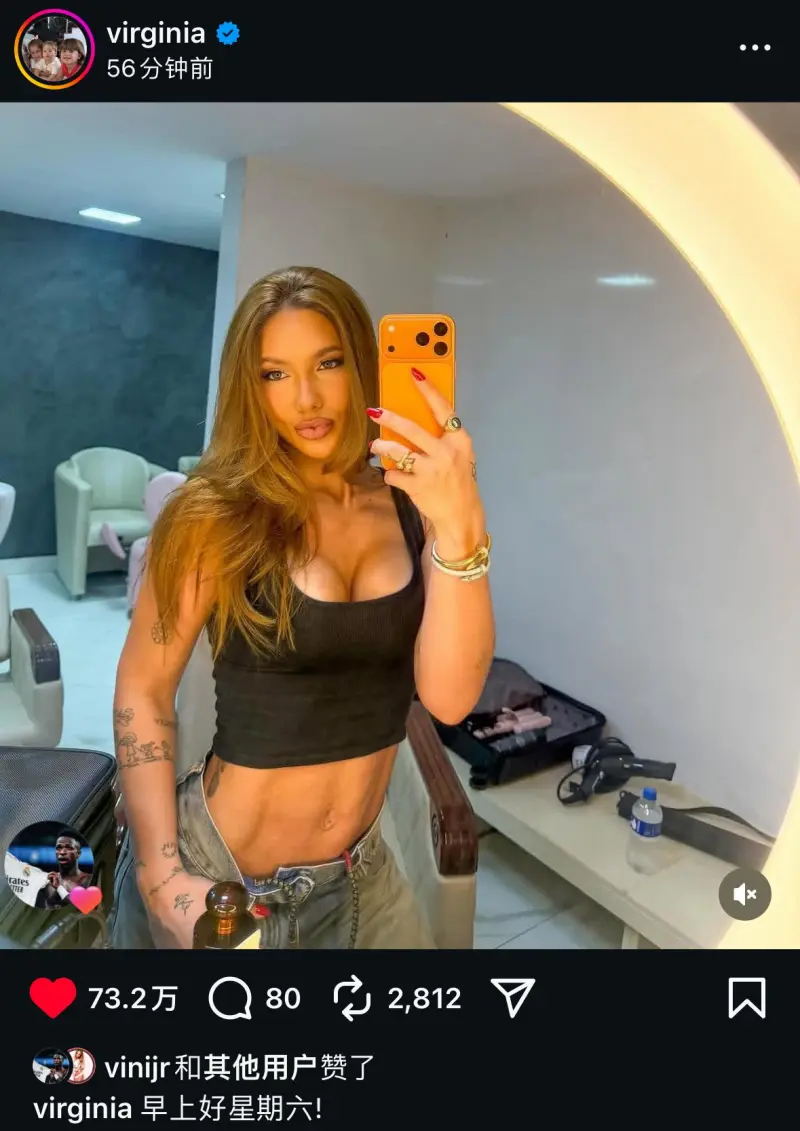 維尼修斯再次點(diǎn)贊前任動(dòng)態(tài),二人任互關(guān)上周巴西媒體曝光維尼撩騷導致分手,目前二人依然互關(guān)。維尼點(diǎn)贊