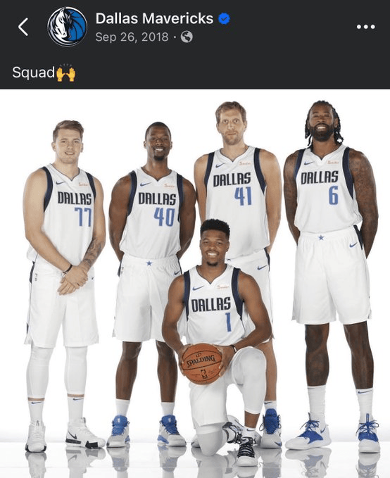 圖中的五人分別是東契奇、巴恩斯、諾維茨基、小喬丹和丹尼斯-史密斯,目前僅剩丹尼斯-史密斯在球隊中。