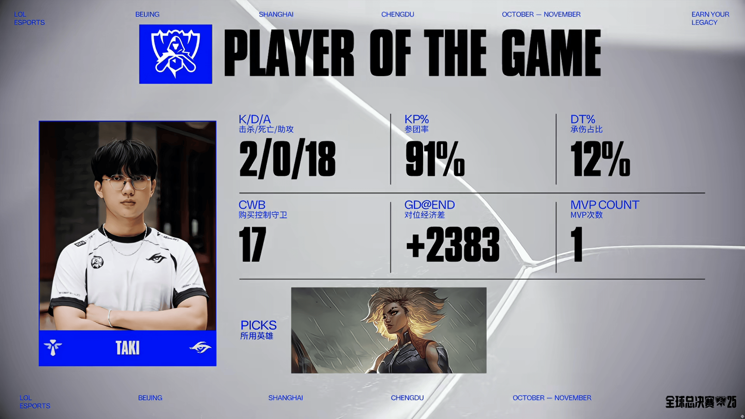 [流言板]Taki芮爾打出2/0/18戰績(jì),拿下TSW對陣VKS對局MVP