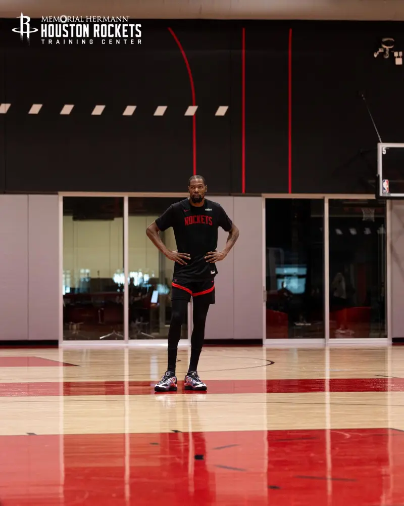 虎撲10月11日訊 火箭官方曬出凱文-杜蘭特訓練照與球迷分享。