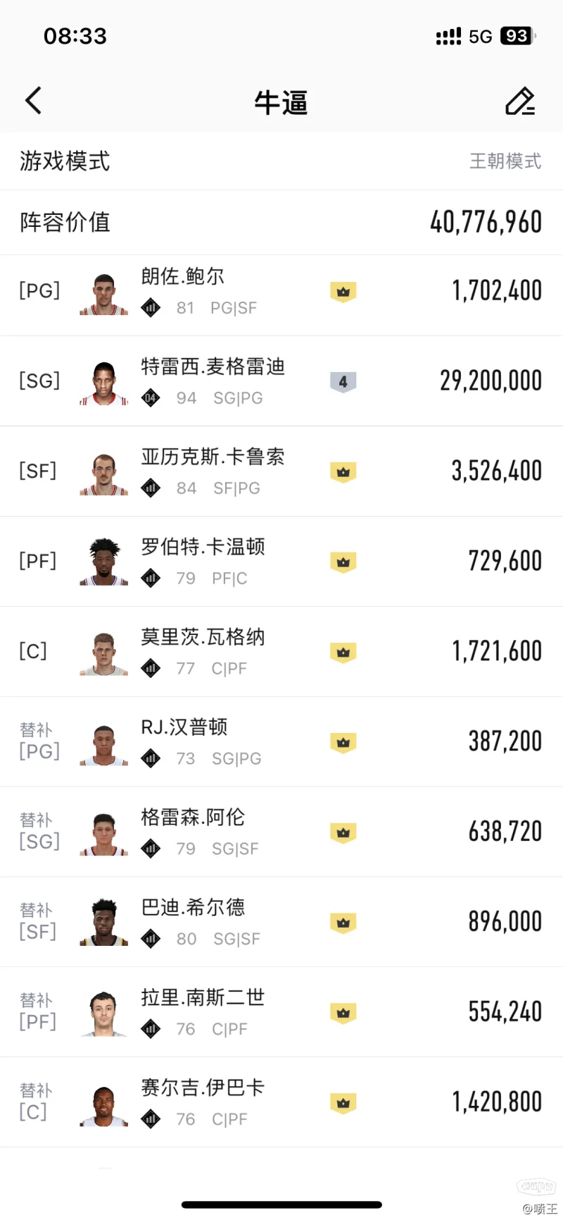 情懷4麥,搭配王朝陣容,想把評分壓在95左右