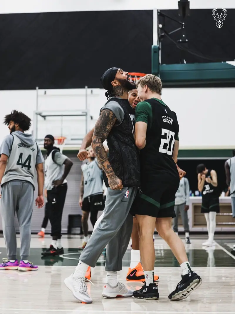 虎撲10月12日訊 雄鹿官方更新Ins,曬出一組雄鹿球員AJ-格林的化雄訓練照與球迷分享。