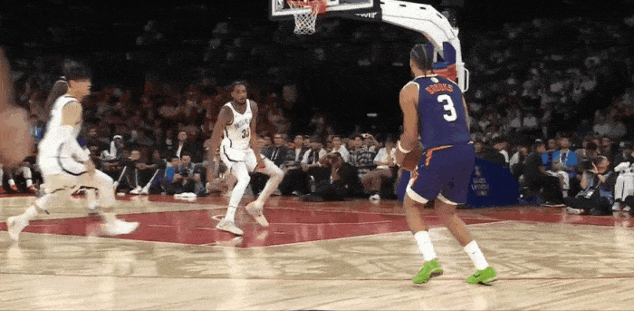 虎撲10月10日訊 NBA季前賽,太陽(yáng)對陣籃網(wǎng)的擊迎比賽正在進(jìn)行中。