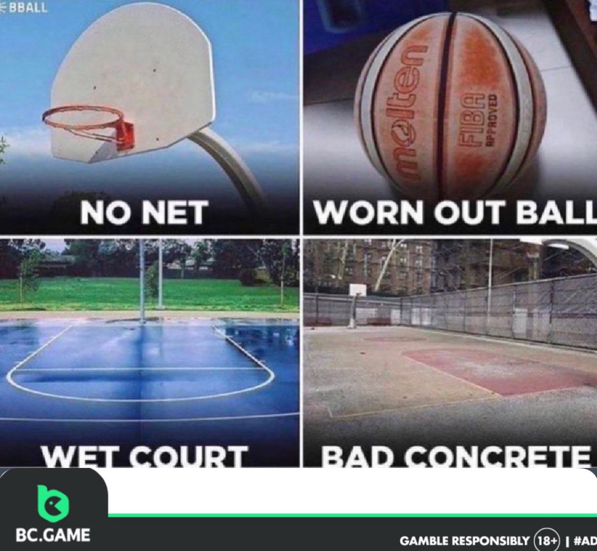 這四張圖片分別代表了打球時(shí)遇到的四種難受事件——