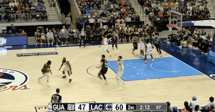明斯命中虎撲10月10日訊 NBA季前賽,快船對陣廣州的下?lián)舯荣愓谶M(jìn)行中。