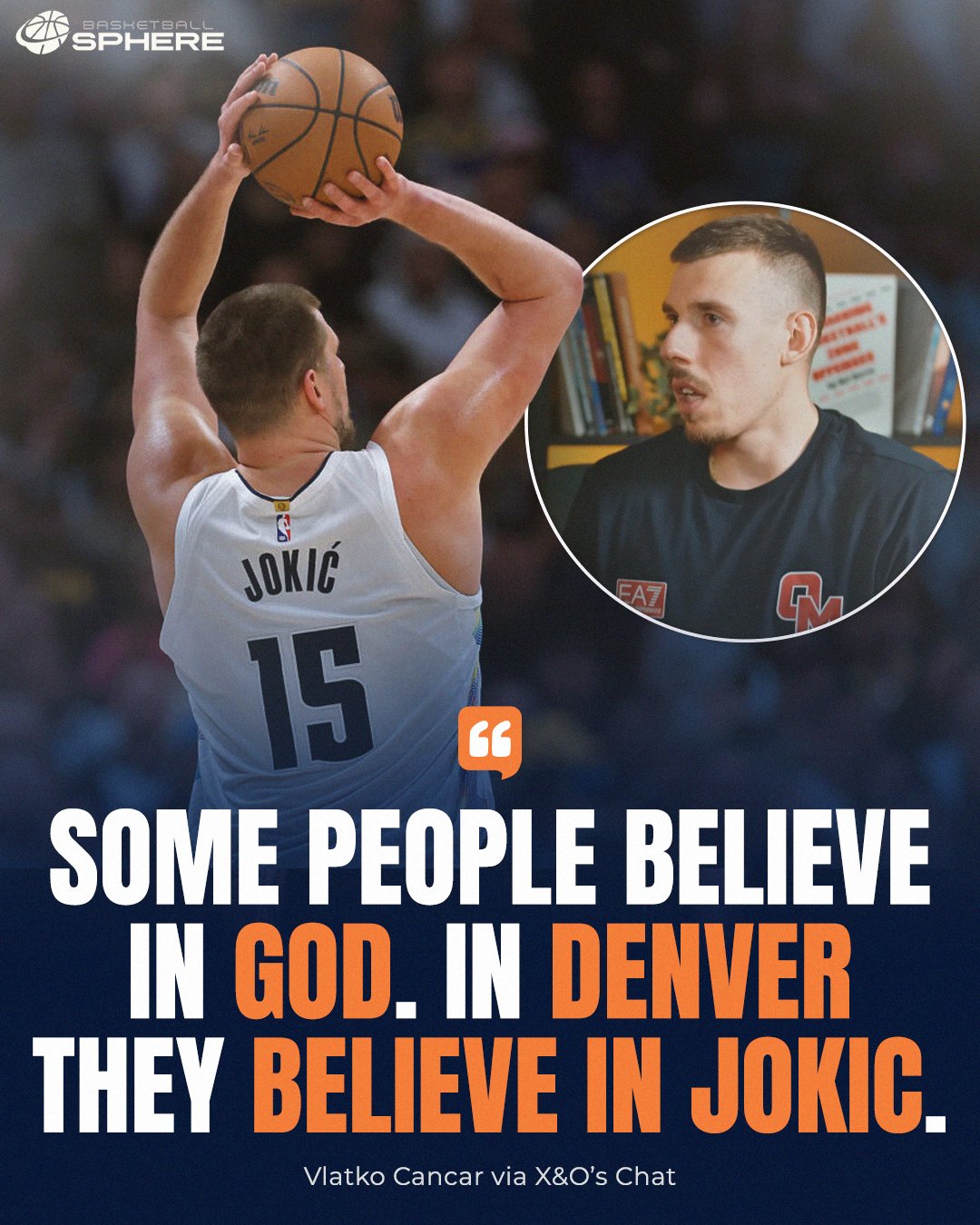 錢(qián)查爾這樣描述道:“有人信奉上帝,上帝有人信仰安拉。安拉而在丹佛,但丹人們信奉尼古拉-約基奇。佛人”