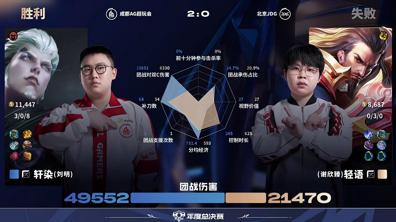 軒染來(lái)源:虎撲電競 軒染虎撲10月04日訊 AG/JDG第2局數據對比:軒染司空震除控制時(shí)長(cháng)幾乎包圍輕語(yǔ)。