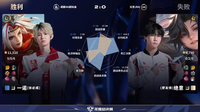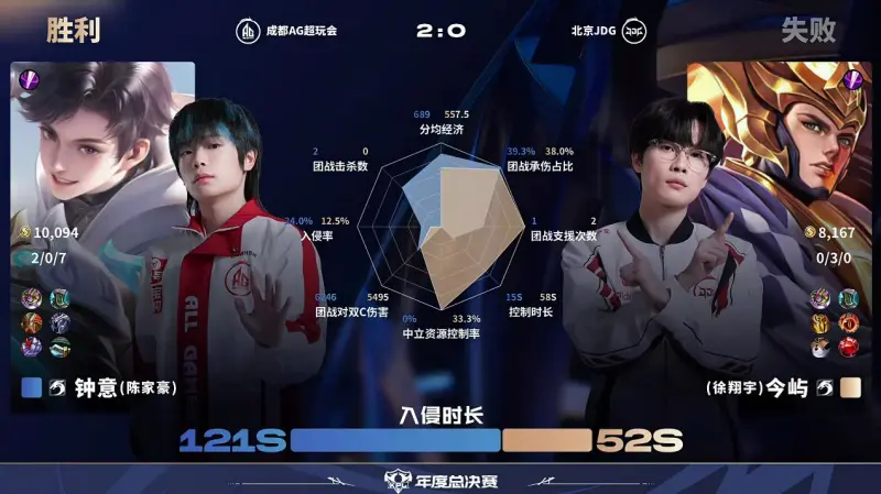 虎撲10月04日訊 AG/JDG第2局數據對比:軒染司空震除控制時(shí)長(cháng)幾乎包圍輕語(yǔ)。