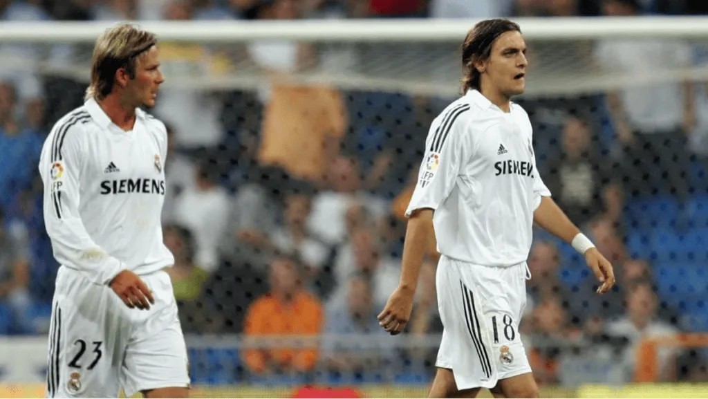 當時(shí)卡羅主教練在主場(chǎng)對陣西班牙人的板皇比賽中安排伍德蓋特與貝克漢姆同場(chǎng)首發(fā)。