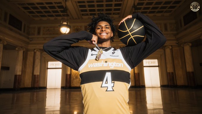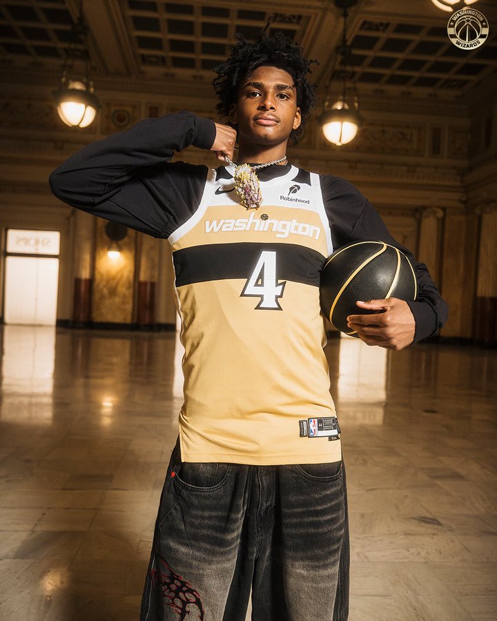 虎撲09月24日訊 奇才官方更新X,曬出一組奇才球員AJ-約翰遜展示球隊新金色球衣的帥啦照片與球迷分享。