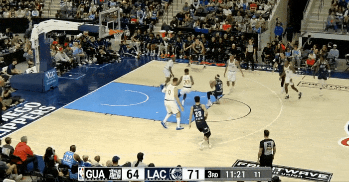 第三節比賽,空切陳國豪側翼空切接球拋投,接球絕巴圖姆補防正面大帽拒絕。拋投