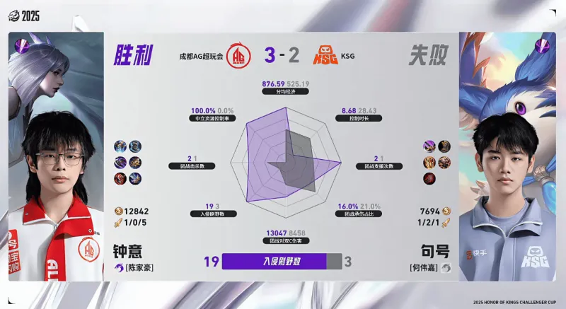 虎撲12月21日訊 AG/KSG第五局數據對比:長(cháng)生海諾近乎包圍對位貂蟬