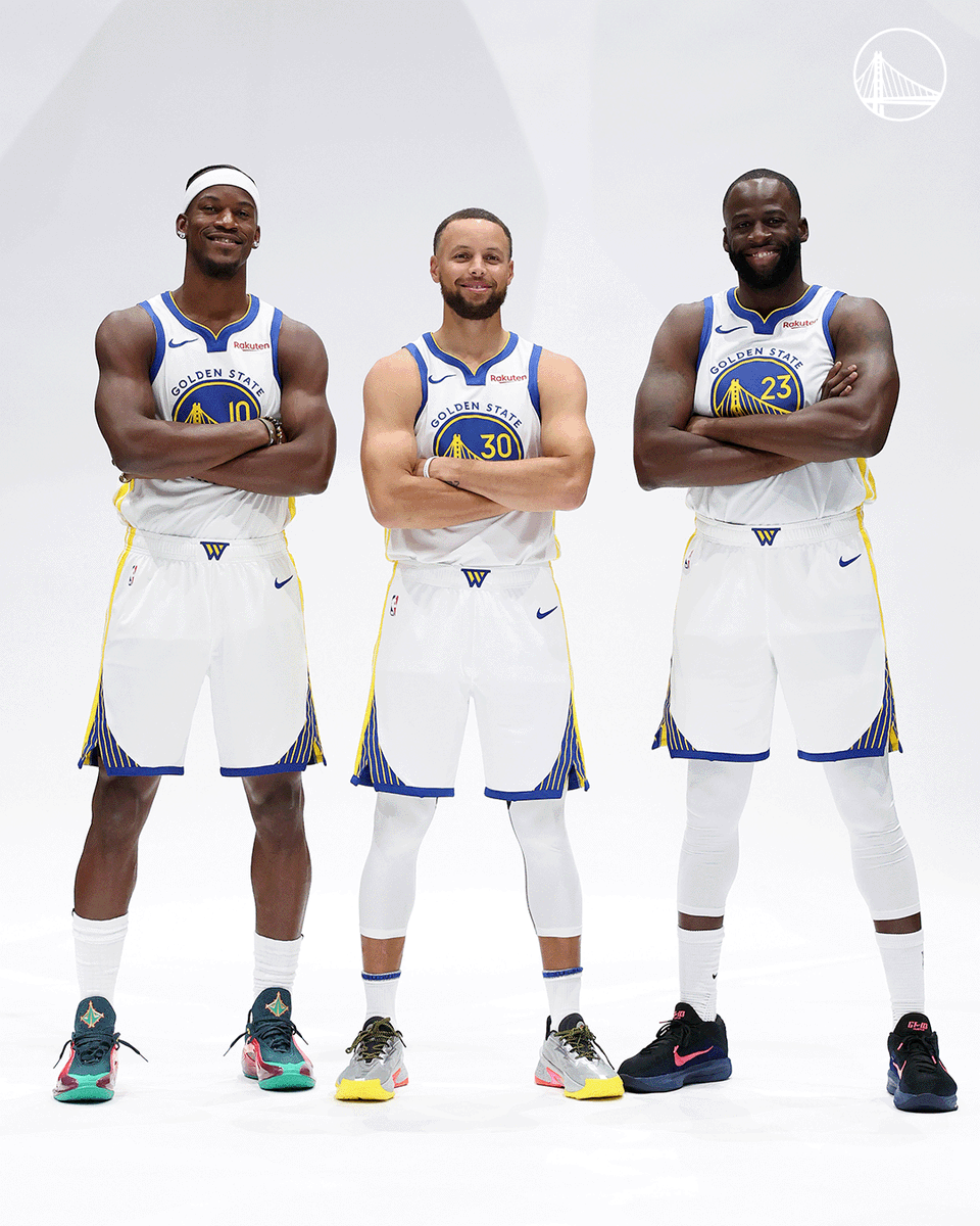 圖中包括吉米-巴特勒、士官斯蒂芬-庫里、德雷蒙德-格林。