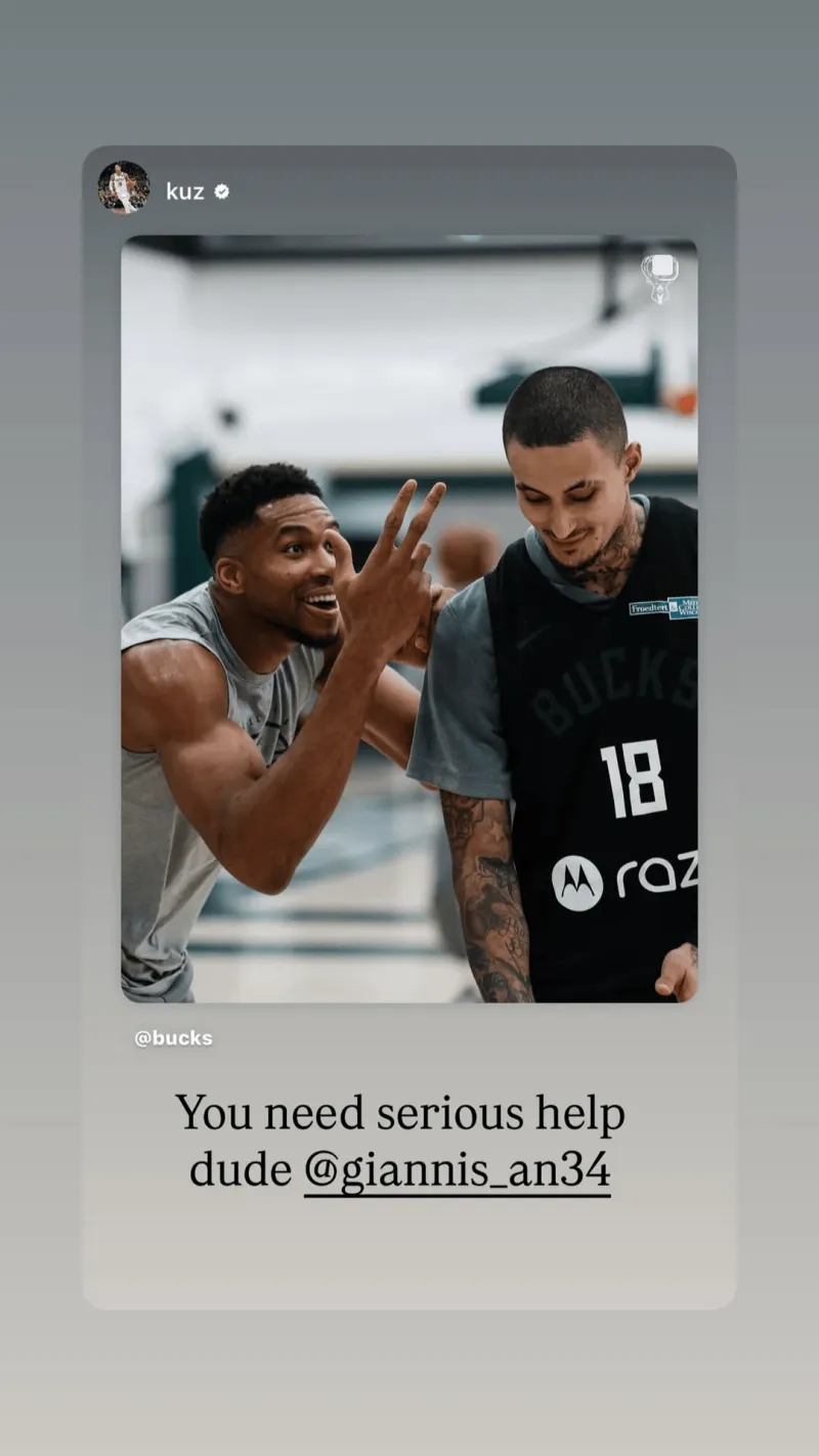 來(lái)源:Instagram虎撲10月09日訊 雄鹿球員揚尼斯-阿德托昆博更新社交媒體,轉發(fā)了庫茲馬發(fā)布的動(dòng)態(tài)最新動(dòng)態(tài)。