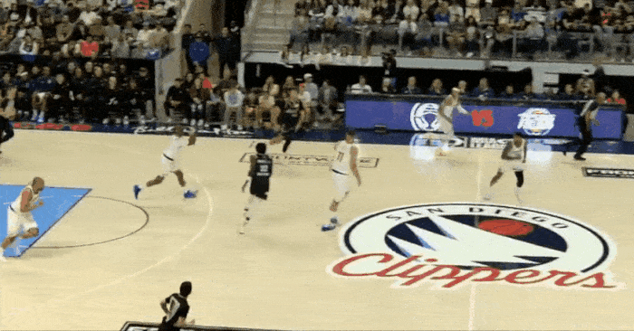 第三節比賽,單節科林斯空接暴扣,流言林快船單節17-2領(lǐng)先20分打停廣州。板拉暴扣