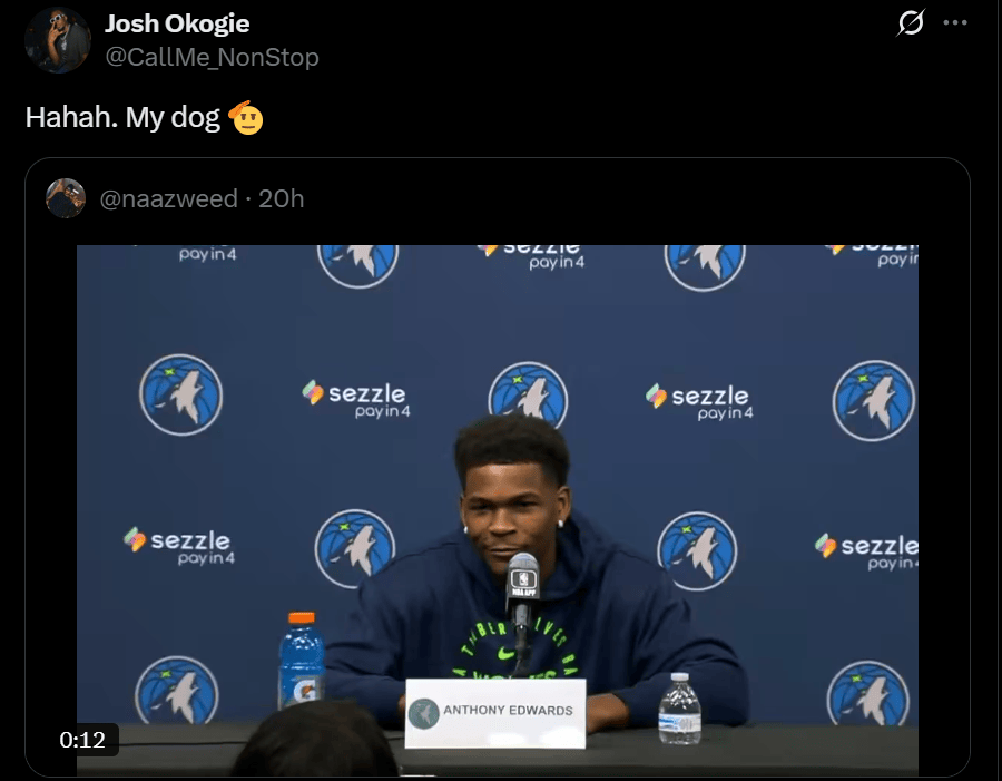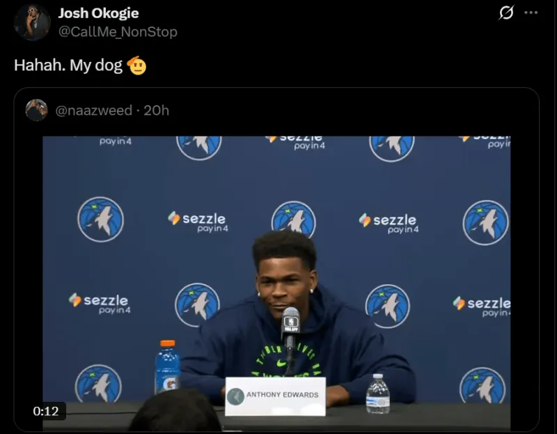 隨后,德華的前隊友弟奧科吉在社交媒體上轉發(fā)了這一片段,茲最并回應道:“哈哈,我的好兄弟?!?/p>