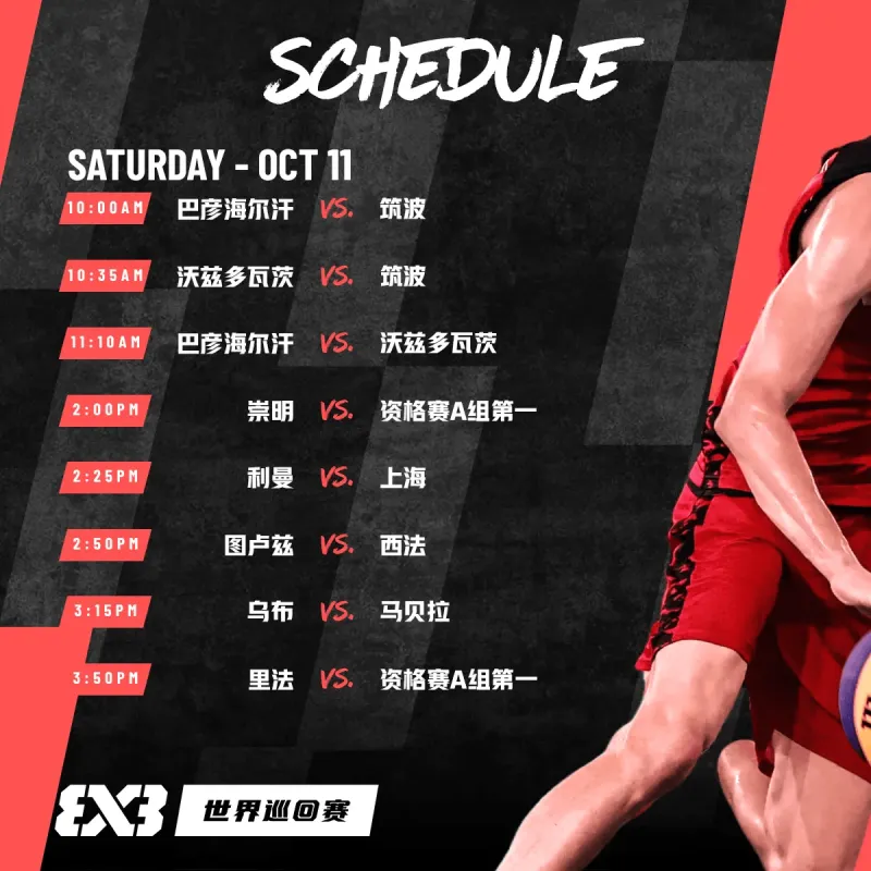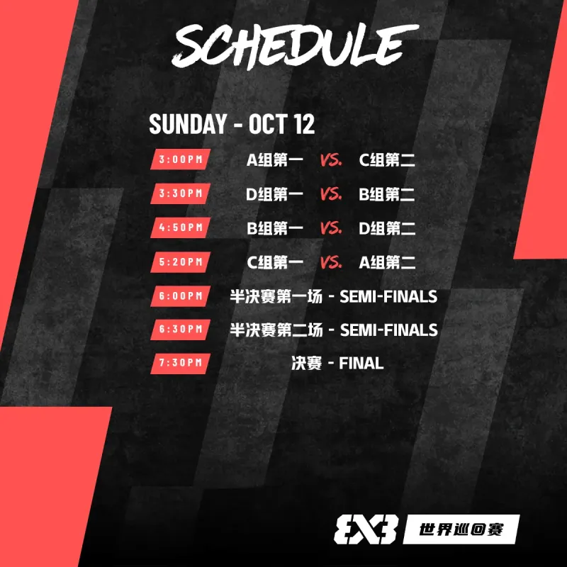虎撲10月11日訊 今日,FIBA三籃分享德清站賽程。分享