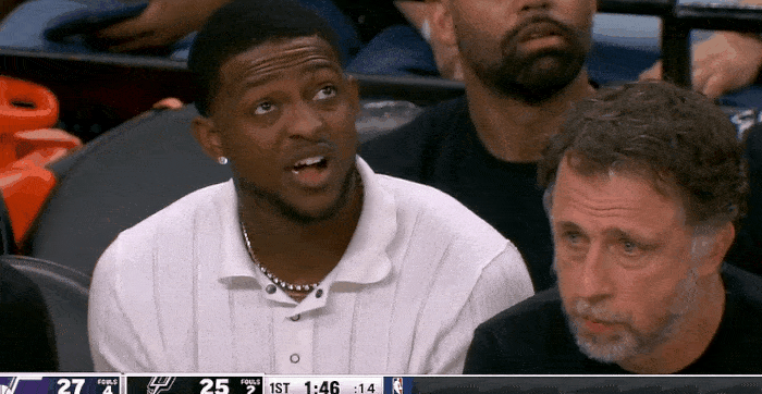 第一節比賽,到場(chǎng)鏡頭給到場(chǎng)邊觀(guān)戰的戰的戰??怂?,今日因傷休戰。???/p>來(lái)源:虎撲