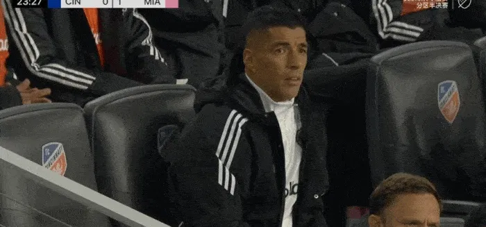 在看啥?蘇亞雷斯在替補席一臉茫然