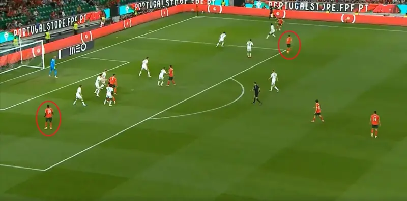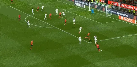 最后,就是葡萄牙的左路幾乎沒(méi)有存在感,貝爾納多-席爾瓦本身就有局限,而身后的門(mén)德斯本該進(jìn)行拉邊和沖擊,但卻更多地出現在肋部用來(lái)牽制對手: