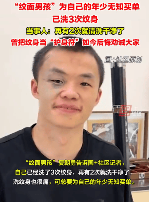 虎撲10月11日訊 10月10日,廣東?!凹y面男孩”為自己的年少無(wú)知買(mǎi)單:已經(jīng)洗了3次紋身,再有2次就洗干凈了。他表示,自己是年少無(wú)知的時(shí)候紋的,那個(gè)時(shí)候被一些比自己年齡大的人欺負,就錯把紋身當成了保護自己的工具。希望通過(guò)自己的經(jīng)歷,讓更多青少年明白,別讓一時(shí)的“想保護自己”,變成一輩子的“想洗掉自己”。紋身從不是“保護殼”,真正的強大要靠?jì)刃摹?/p>