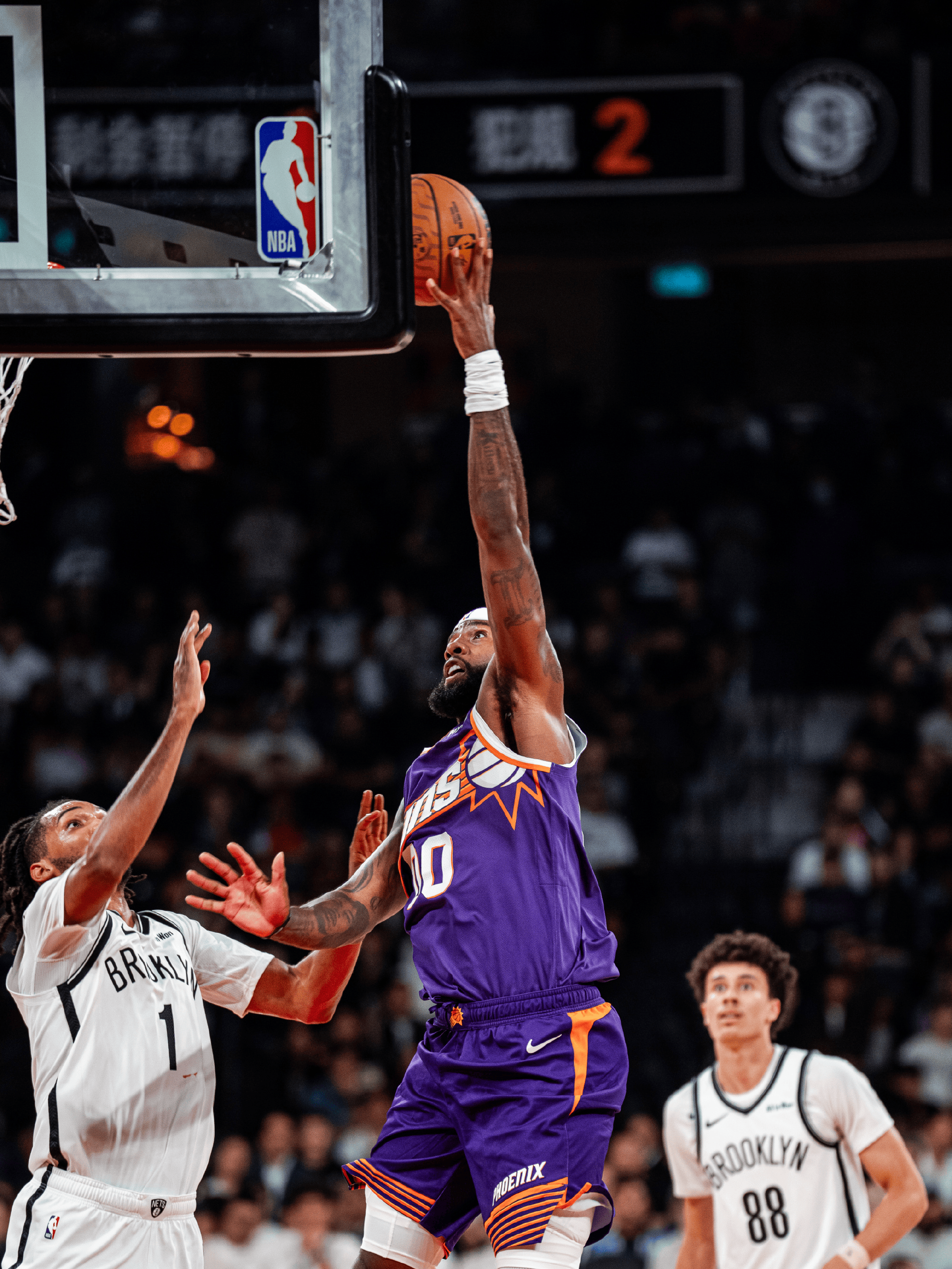 虎撲10月10日訊 今日NBA中國賽,太陽(yáng)對陣籃網(wǎng)的皆兵比賽正在進(jìn)行中。